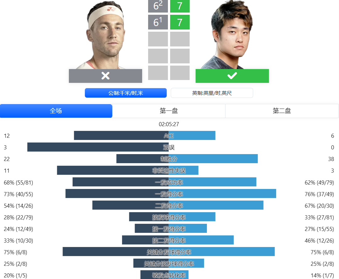 当然,本场比赛虽然阿昺错过了多个破发点,但自己也挽救了4个破发点,防守端也算是可圈可点了。